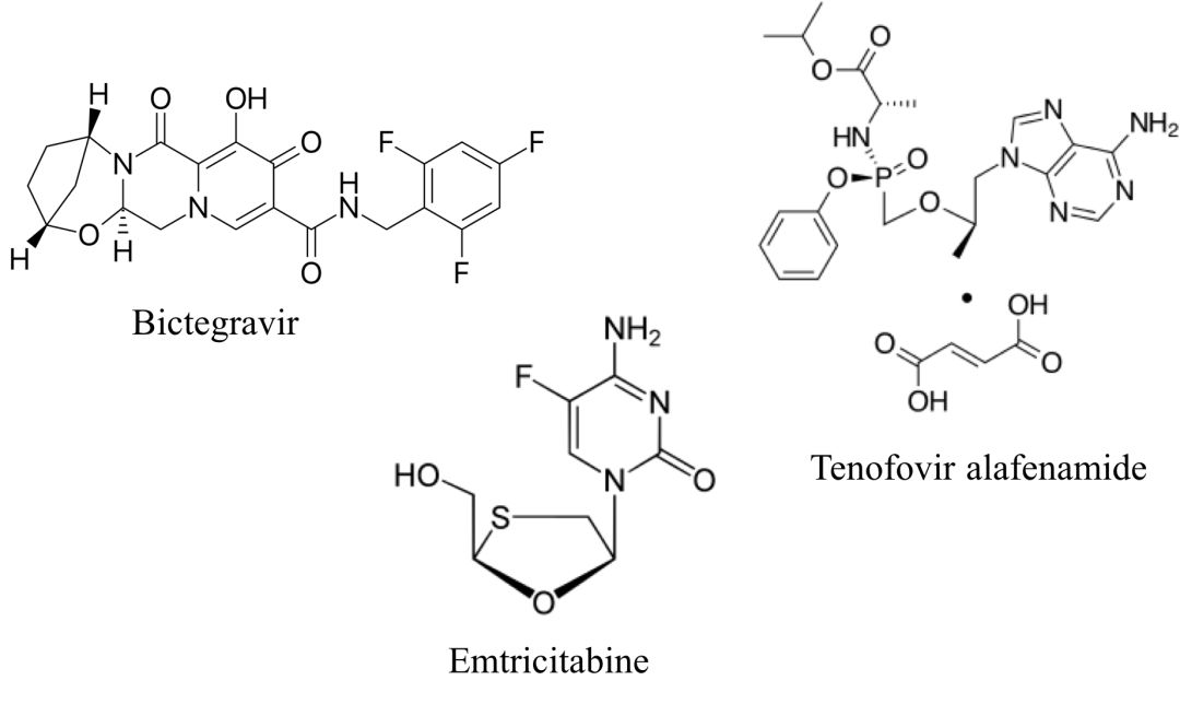 Biktarvy由bictegravir (50mg,INSTI),emtricitabine(200mg,NRTI) 与tenofovir alafenamide (25mg,NRTI)三种成分组成。与Gilead的另一款抗HIV药物Descovy(FTC/TAF)相比,Biktarvy多了bictegravir这个成分。这是一款全新整合酶链转移抑制剂(INSTI)。