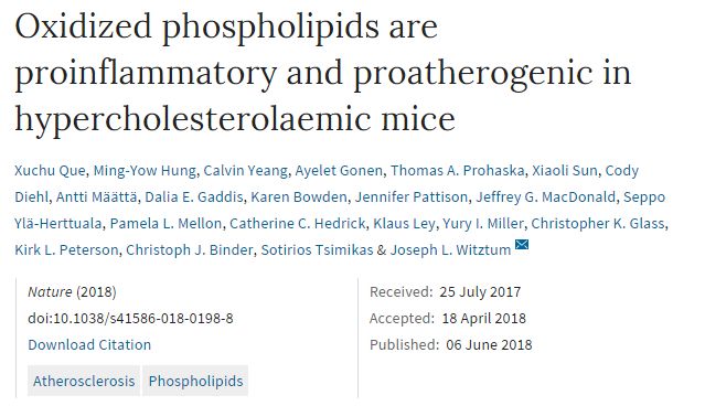 研究人员对低密度脂蛋白基因敲出小鼠(Ldlr - / -小鼠)使用Apoe启动子表达E06的单链可变片段(E06-scFv)(E06-scFv小鼠),同Ldlr - / -小鼠相比,在1%高胆固醇饮食4,7和12个月后动脉粥样硬化减少57-28%。且全身炎症减少,并且肝脏脂肪变性和炎症也降低。经15个月测量,E06-scFv小鼠生存期延长。(《Nature》2018(doi:10.1038 / s41586-018-0198-8))。