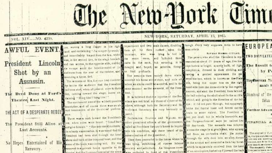 《纽约时报》报道林肯总统被刺身亡