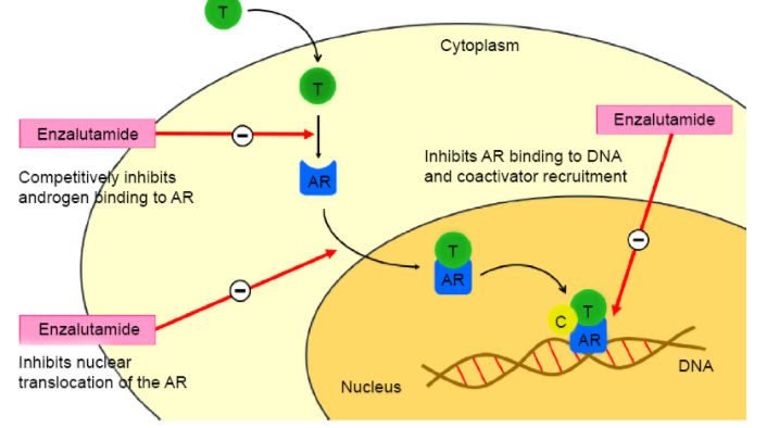 Xtandi是一种新颖的、每日一次的口服雄激素受体信号传导抑制剂,该药能够抑制雄激素受体信号传导通路中的多个步骤,旨在干扰睾酮结合前列腺癌细胞的能力,已被证明能够降低癌细胞的生长,并能诱导肿瘤细胞死亡。睾酮是一种男性激素,能够激化前列腺癌细胞的生长。