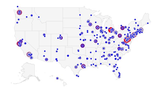 对前列腺癌的研究数据分析,发现自2000年以来,美国联邦政府投入该领域的总经费约62亿美金,有759个机构,该方向开展了16797个项目。专家约3642人,专家地图分布如下: