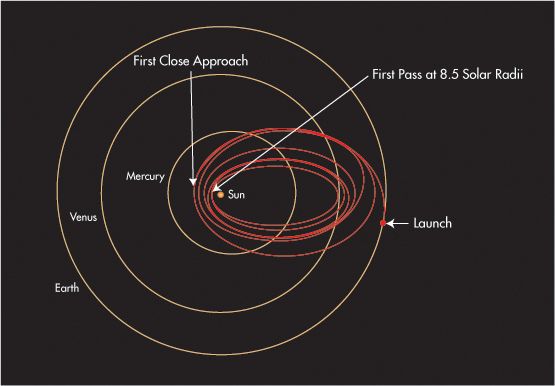 然而这只是一个开始。在接下来的7年中,该飞行器将绕太阳转23次,且距离太阳越来越近,最终飞至距太阳表面仅620万公里,实现最近距离观测。这比1976年德国Helios 2号飞船设定的记录标记近七倍。